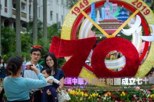 政府總部花園內有一座“慶祝中華人民共和國成立七十周年”大型立體裝置花壇,時鐘的指針落在1949及2019,顯示中華人民共和國建國至今的年份。