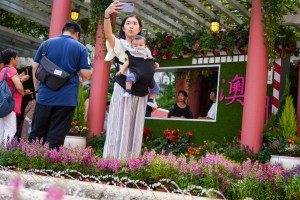 政府總部花園有“澳門”、“MACAU”明信片立體框架,是遊人另一打卡重點。