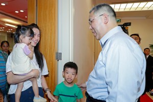 行政長官崔世安在政府總部禮賓樓與到訪的家庭合影留念