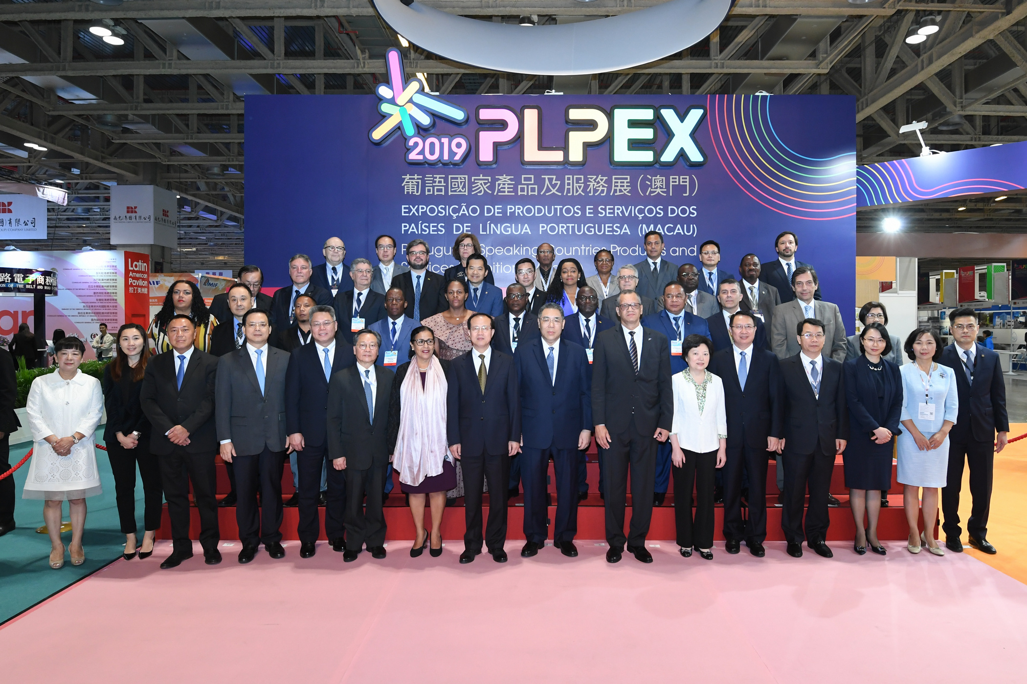 行政長官崔世安與主要嘉賓在“2019年葡語國家產品及服務展(澳門)”主館前合影