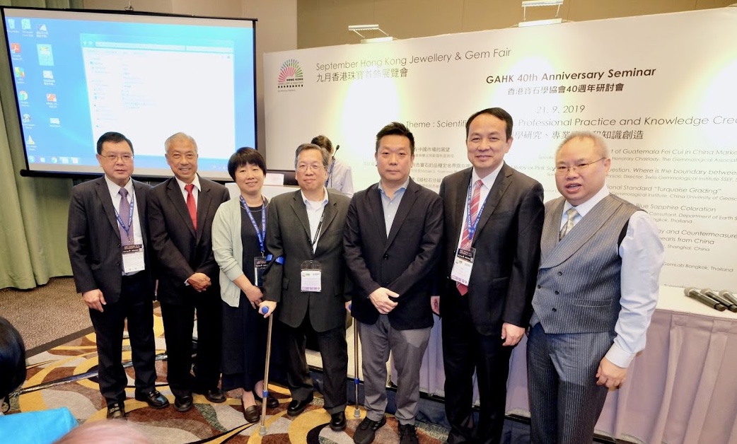 是次研討會以「科學研究,專業實踐和知識創造」為主題,共邀請六位國際級寶石學專家,包括香港寶石學協會榮譽主席歐陽秋眉教授、SSEF瑞士寶石學院院長 Michael S.Krzemnicki 博士、中國地質大學(武漢)珠寶學院院長楊明星教授、泰國曼谷泰國農業大學理學院地球科學系國際顧問 Pornsawat Wathanakul 博士、上海同濟大學亓利劍教授 以及曼谷 ICA GemLab研究經理 Dietmar Schwarz 博士。研討會的統籌為澳門金業同業公會專業顧問邵為忠博士,大會主持人為香港寶石學協會副主席兼教育理事廖尚宜博士。研討會全程超過三小時,在場座無虛設,各位教授在會上分享有關珠玉石的不同主題,包括危地馬拉翡翠在中國市場的展望、有色寶石的品種定名界限、中國國家標準《綠松石分級》、藍寶石顏色成因的新解說、中國淡水有核養殖珍珠面臨的檢測技術問題與對策、尖晶石2019。