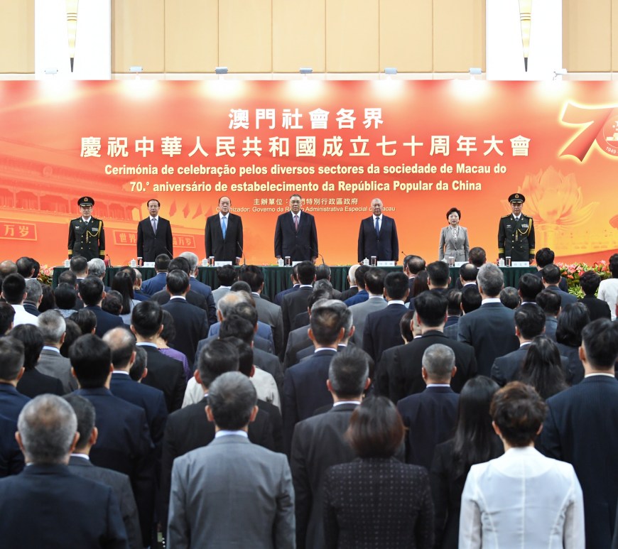 今年是中華人民共和國成立七十周年,澳門特區政府於9月27日舉辦「澳門社會各界慶祝中華人民共和國成立七十周年大會」。行政長官崔世安致辭時表示,新中國成立以來取得了舉世矚目的歷史性成就,而澳門回歸後重新納入國家治理體系,「一國兩制」在澳門特區的實踐彰顯了強大生命力;澳門特區將不斷推進「一國兩制」成功實踐,作為實現中華民族偉大復興的中國夢的重要組成部分。