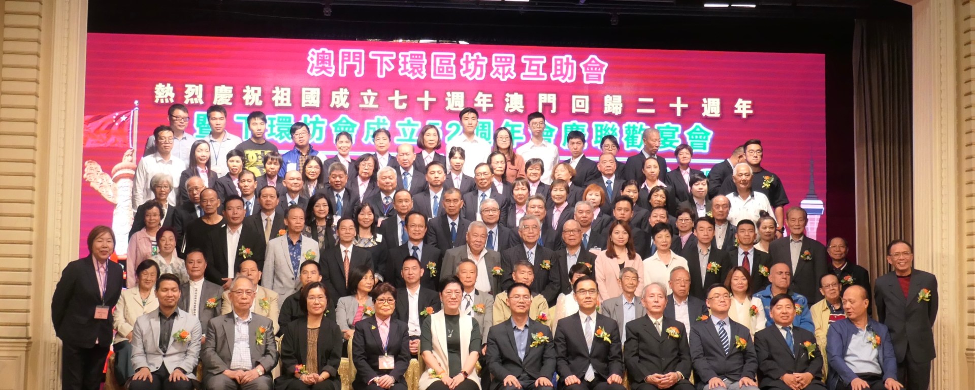 下環坊會十一月十一日聯歡,慶祝中國人民共和國成立七十周年、澳門回歸廿周年暨該會成立五十二周年,設晚宴筵開多席,場面熱鬧。張麗珍會長冀新屆行政長官加強重視房屋、交通、住屋等問題,合理分配資源,並盼坊會及下環社區中心、頤康中心合作無間,辦好社區服務。