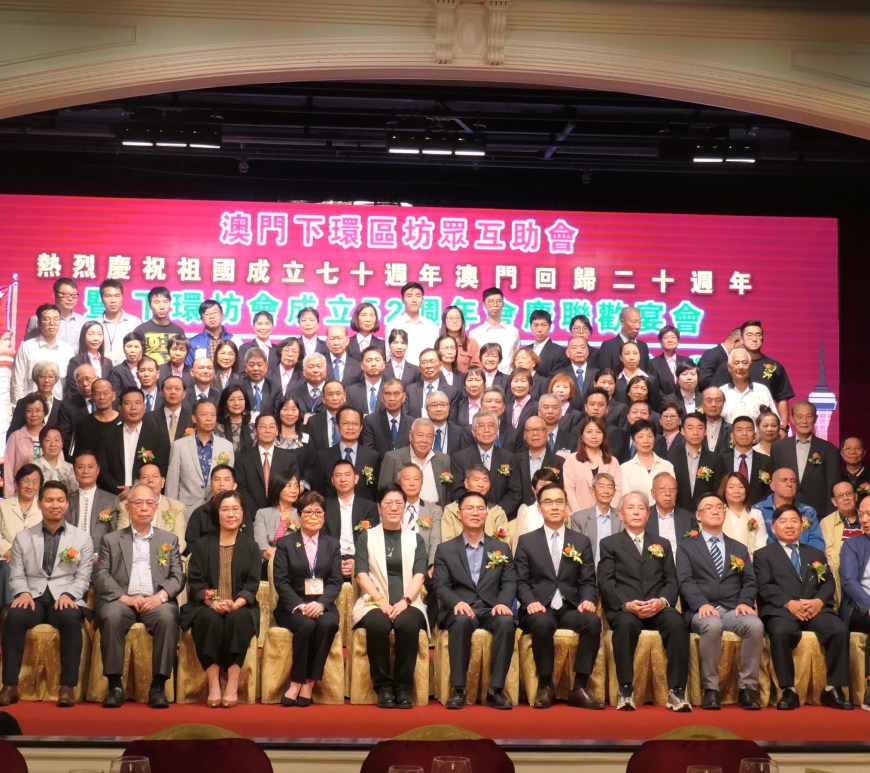 下環坊會十一月十一日聯歡,慶祝中國人民共和國成立七十周年、澳門回歸廿周年暨該會成立五十二周年,設晚宴筵開多席,場面熱鬧。張麗珍會長冀新屆行政長官加強重視房屋、交通、住屋等問題,合理分配資源,並盼坊會及下環社區中心、頤康中心合作無間,辦好社區服務。