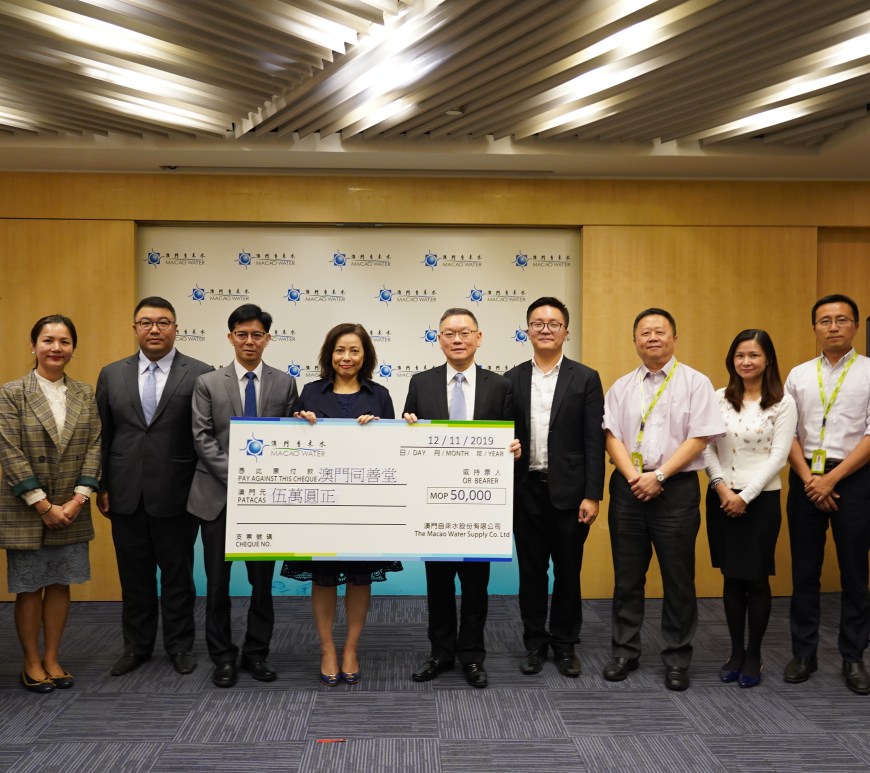 澳門自來水一直秉持「取於斯,用於斯」的理念,肩負社會責任,積極參與公益事務。今年繼續響應同善堂「沿門勸捐」活動,捐贈善款支持同善堂的活動經費,推動本澳慈善事業的發展,以點滴綿力,惠澤社群。