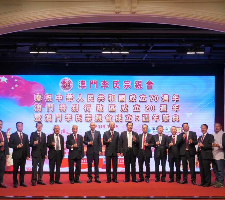 李氏宗親會於十一月十五日聯歡,舉行慶祝新中國成立七十周年、澳門特區成立二十周年暨該會成立五周年晚宴。李沛霖會長表示,未來定當認真貫徹創會宗旨,繼續做好聯絡宗族情誼、推動愛國愛澳、發揚團結互助、積極共謀福利,並廣泛開展交流和促進祖國統一的工作,不負大家期望。