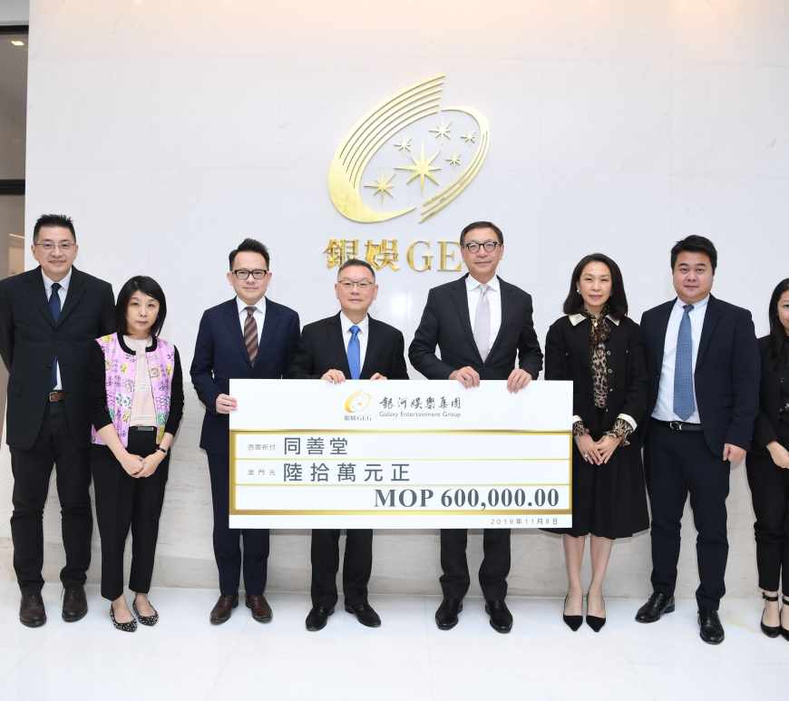 銀河娛樂集團秉承「取諸社會,用諸社會」的精神,一直致力為社區作出貢獻,參與及贊助多項本地籌款及慈善活動。今年,銀娛繼續響應同善堂的年度「沿門勸捐」活動,向其捐贈澳門幣60萬元,並與其合作於「澳門銀河」後勤區首次設置「同善堂服務推介攤位」,向團隊成員宣傳關愛互助的慈善精神。
