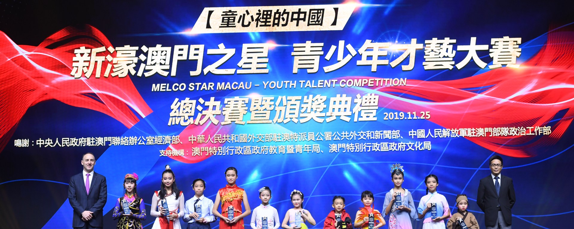 新濠主席兼行政總裁何猷龍先生表示:「新濠透過重點青年發展計劃例如『追夢計劃』,在澳門培育創意人才,一直是我們企業社會責任的主要範疇。我們很高興能夠透過與國情教育(澳門)協會合辦的『新濠澳門之星—青少年才藝大賽』,將我們的青少年發展目標與新濠著名的國際級娛樂表演結合。為慶祝中國澳門的雙慶年,我們欣賞到多個參賽者以『童心裡的中國』為主題而創作的表演節目,評審過程賞心悅目。我們亦相信比賽有助提升青少年對國家的歸屬感和認同感,以促進澳門青少年的愛國、愛澳情懷。」