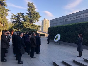 考察團到南京大屠殺遇難同胞紀念館進行獻花和悼念儀式