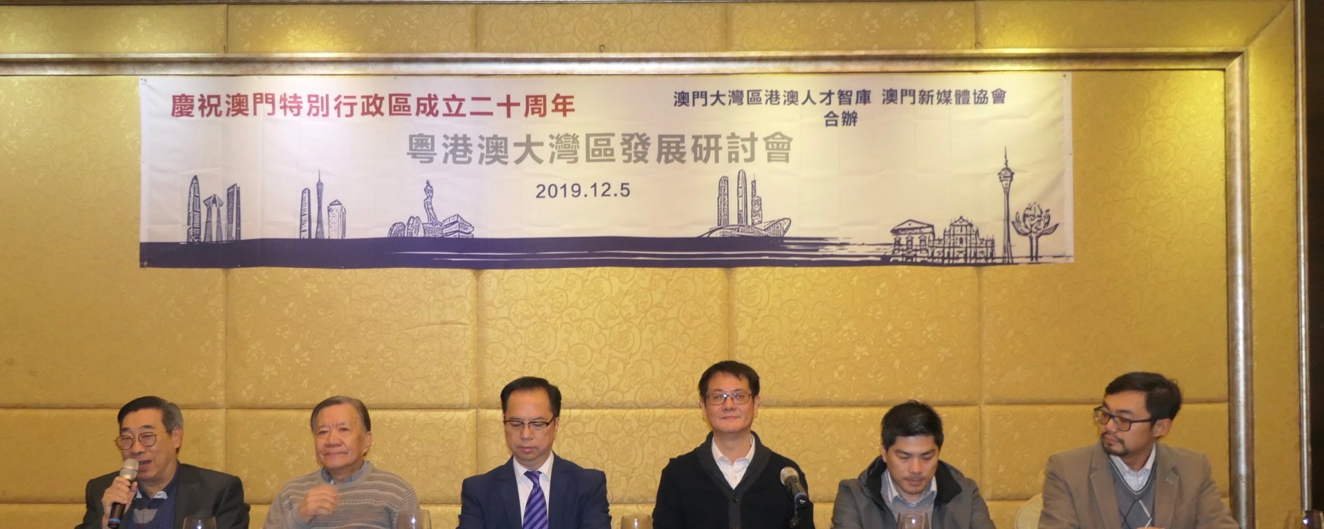澳門大灣區港澳人才智庫、澳門新媒體協會合辦的「粵港澳大灣區發展研討會」於十二月五日舉行,探討三地在法律、金融、教育、電商、經濟等領域,集思廣益,冀更好地推進澳門融合大灣區發展。