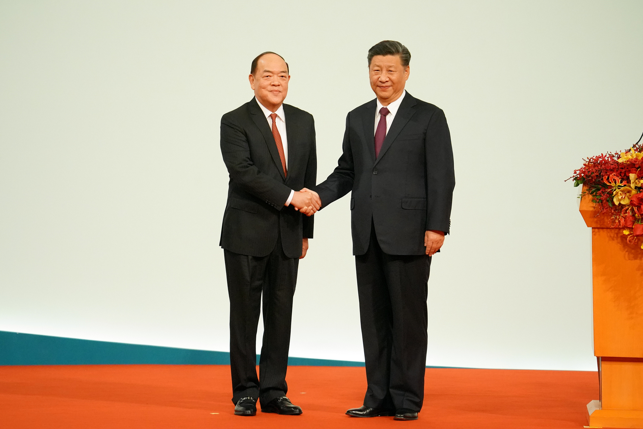 國家主席習近平與剛宣誓就職的第五任行政長官賀一誠親切握手