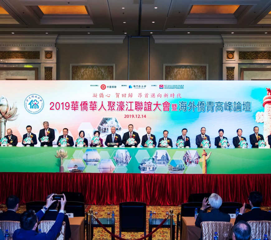 行政長官崔世安表示,澳門特區全力參與「一帶一路」和粵港澳大灣區建設,加快融入國家發展大局,他歡迎華人華僑通過澳門的平台,參與區域合作,實現優勢互補、共贏發展,而澳門特區亦會繼續為發展華人華僑事務鋪路架橋。