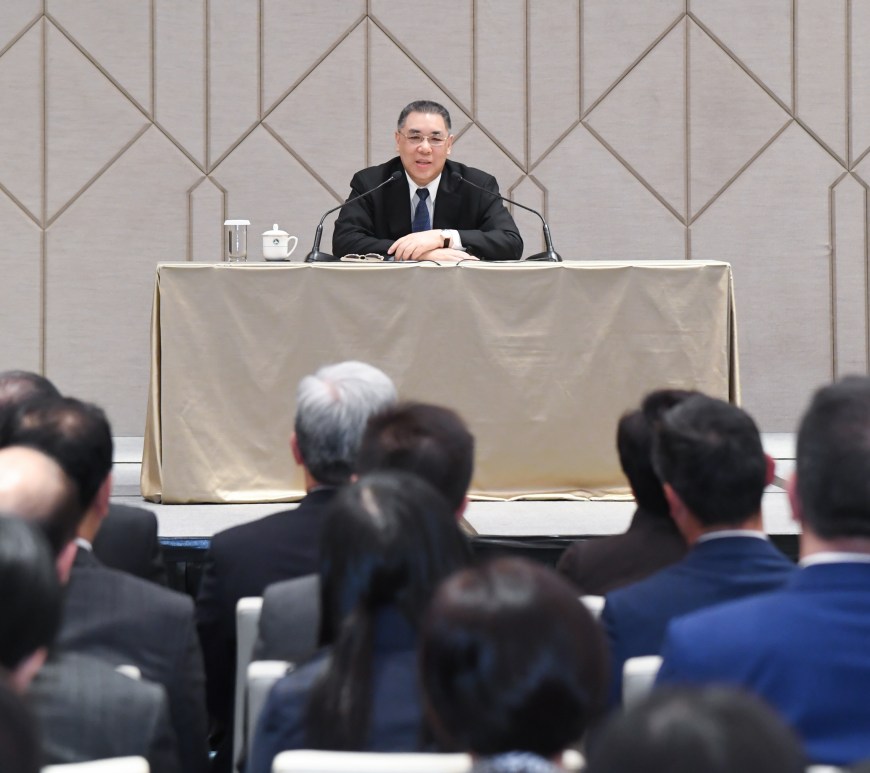 行政長官崔世安日前與全體主要官員和各級官員座談,充分肯定整個公務員團隊過去十年來的工作成果和作出的貢獻,同時勉勵各級官員和公務員繼續努力作為,擔當起新時代新使命,全力支持和配合第五任行政長官賀一誠先生領導特區政府施政,為澳門的持續發展作出新的努力和貢獻。