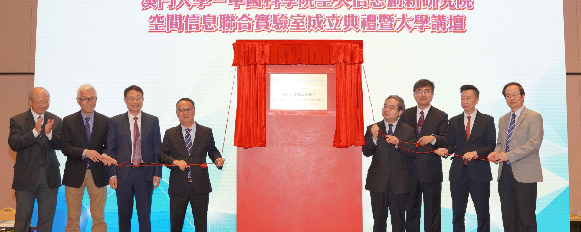 澳大校長宋永華和中科院空天院院長吳一戎簽署「澳門大學─中國科學院空天信息創新研究院空間信息聯合實驗室」合作協議;眾嘉賓為空間信息聯合實驗室進行揭牌,並獲贈聯合實驗室首份研究圖冊「澳門回歸二十週年」。宋永華致辭表示,澳門回歸祖國已超過二十個年頭,有幸得到國家一路支持,陸續建立國家重點實驗室以及各研究中心,得以大力發展產學研,使相關科研領域獲得國家和澳門政府的高度認可,希望此次聯合實驗室合作能在科研攻關、人才聯合培養方面更上一層樓。吳一戎則希望此次合作能鼓勵更多年青人投入相關研究領域。