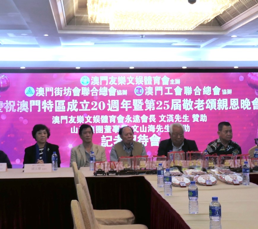 由友樂文娛體育會主辦、街總和工聯協辦的慶祝澳門特區成立二十周年暨第二十五屆友樂敬老頌親恩聯歡晚會於一月七及八日在黃金閣豪食府舉行,兩晚敬老宴約招龍待一千二百名長者。該會藉活動答謝長者過去付出辛勞,宣揚敬老愛老的正面訊息。
