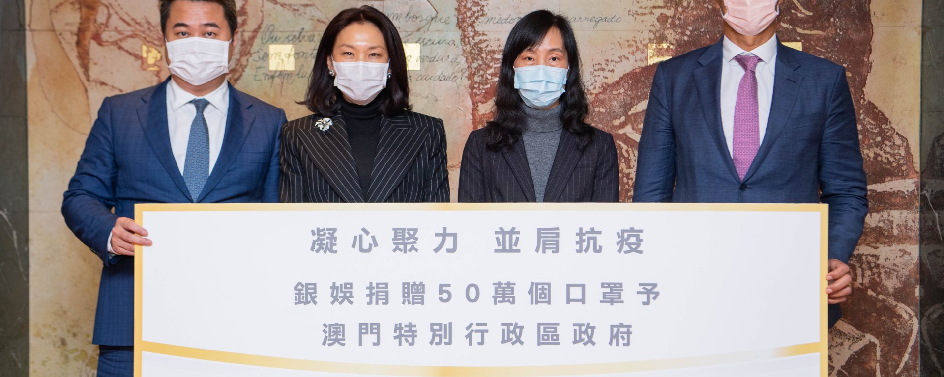 銀河娛樂集團分別向澳門特別行政區政府、珠海市與橫琴新區政府合共捐贈100萬個口罩,以支援兩地防疫物資的需要,傳遞關懷。