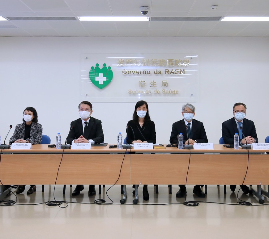 新型冠狀病毒感染應變協調中心日前舉行例行記者會,社會文化司歐陽瑜司長、經濟財政司李偉農司長、衛生局李展潤局長、勞工事務局職業培訓廳張瑋廳長、仁伯爵綜合醫院醫務主任李偉成醫生、旅遊局執照及監察廳陳露廳長、教育暨青年局教育研究暨資源廳黃健武廳長、治安警察局行動及通訊處馬超雄處長、疾病預防控制中心傳染病協調員梁亦好醫生共同會見傳媒。