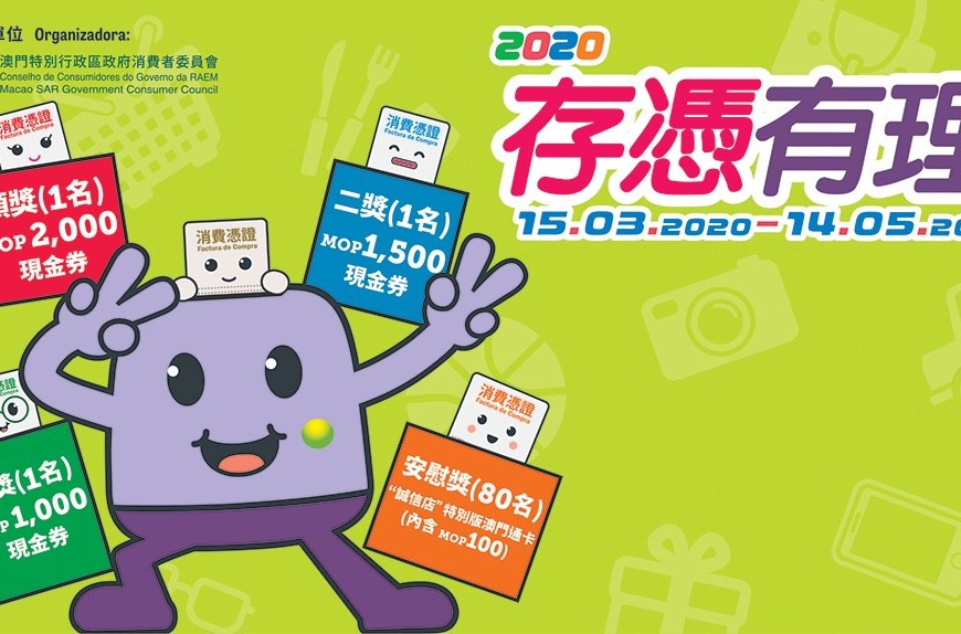 為加強居民消費後保留單據等消費憑證的維權意識,並成為習慣,消委會舉辦「2020 存憑有理」有獎活動,居民由3月15日起可登記參加抽獎,有機會獲得現金券等豐富獎品。