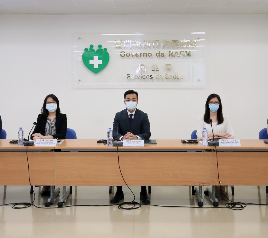 新型冠狀病毒感染應變協調中心於4月20日舉行例行記者會,仁伯爵綜合醫院羅奕龍醫務主任、教育暨青年局教育廳黃嘉祺廳長、旅遊局執照及監察廳陳露廳長、治安警察局公共關係處李德輝處長、疾病預防控制中心傳染病防制暨疾病監測部梁亦好協調員共同會見傳媒。