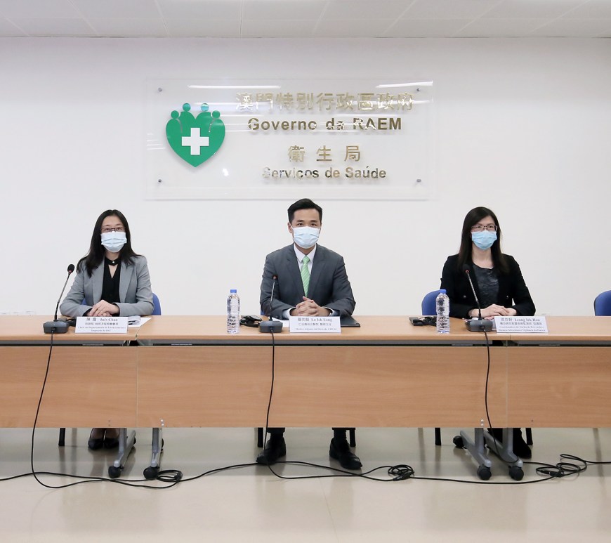 新型冠狀病毒感染應變協調中心於日前舉行例行記者會,仁伯爵綜合醫院羅奕龍醫務主任、旅遊局執照及監察廳陳露廳長、治安警察局行動及通訊處馬超雄處長、教育暨青年局學前暨小學教育處吳美琪處長、疾病預防控制中心傳染病防制暨疾病監測部梁亦好協調員共同會見傳媒。