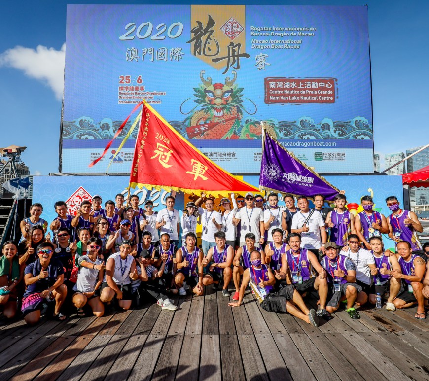 由體育局及中國澳門龍舟總會主辦,市政署及行政公職局協辦的「2020澳門國際龍舟賽」,6月21日在南灣湖水上活動中心上演。當日舉行了多組龍舟小龍賽的賽事,經過一番激烈角逐之後,太陽城-傳奇在澳門公開組小龍200米力壓多隊奪冠。
