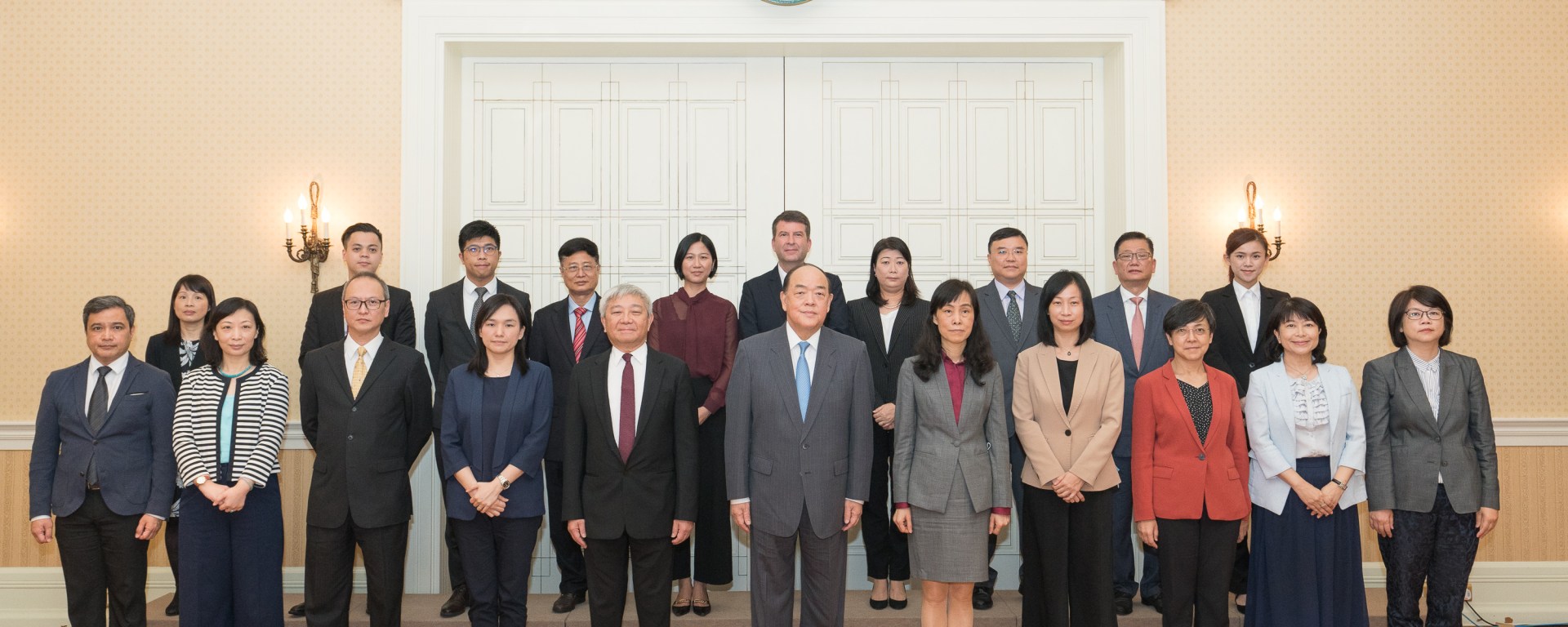 澳門旅遊學院校董會主席陳澤武及成員一行十八人,於六月四日上午拜訪行政長官賀一誠。陳澤武主席感謝行政長官及特區政府對澳門旅遊學院的支持,尤其是擴大學院的校園發展空間,學院會為培育旅遊人才作出更大的貢獻。黃竹君院長向行政長官簡介學院總體方針和發展計劃,特別是建設粵港澳大灣區旅遊教育培訓基地,以及世界旅遊教育培訓中心的工作。