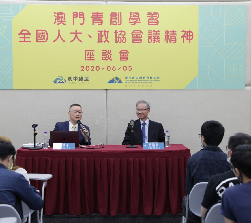澳門青年創業孵化中心日前舉行「澳門青創學習全國人大、政協會議精神座談會」,由身兼澳區全國人大代表的創孵中心董事長崔世平、澳區全國政協委員黃顯輝向逾四十位青年傳達「兩會」情況。他們鼓勵創業者在新常態下認清形勢、積極創新,調整生意經營模式,視疫情為一次壓力測試,重新起步再發展。