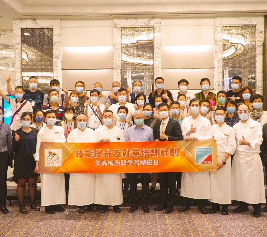 新冠肺炎疫情嚴重影響澳門各行各業,經濟下滑導致失業率上升;特區政府遂於3月起開展一系列「技能提升及就業培訓計劃」(帶津培訓),協助受疫情影響的本地居民增添職業技能,早日重投職場。美高梅在疫情期間持續關注本地就業情況,最近更積極參與「帶津培訓」,為四個餐飲課程提供教學和工作體驗。美高梅期望透過參與此培訓,協助本地居民掌握職業技能,為疫情過後本澳經濟重新起飛作好準備。
