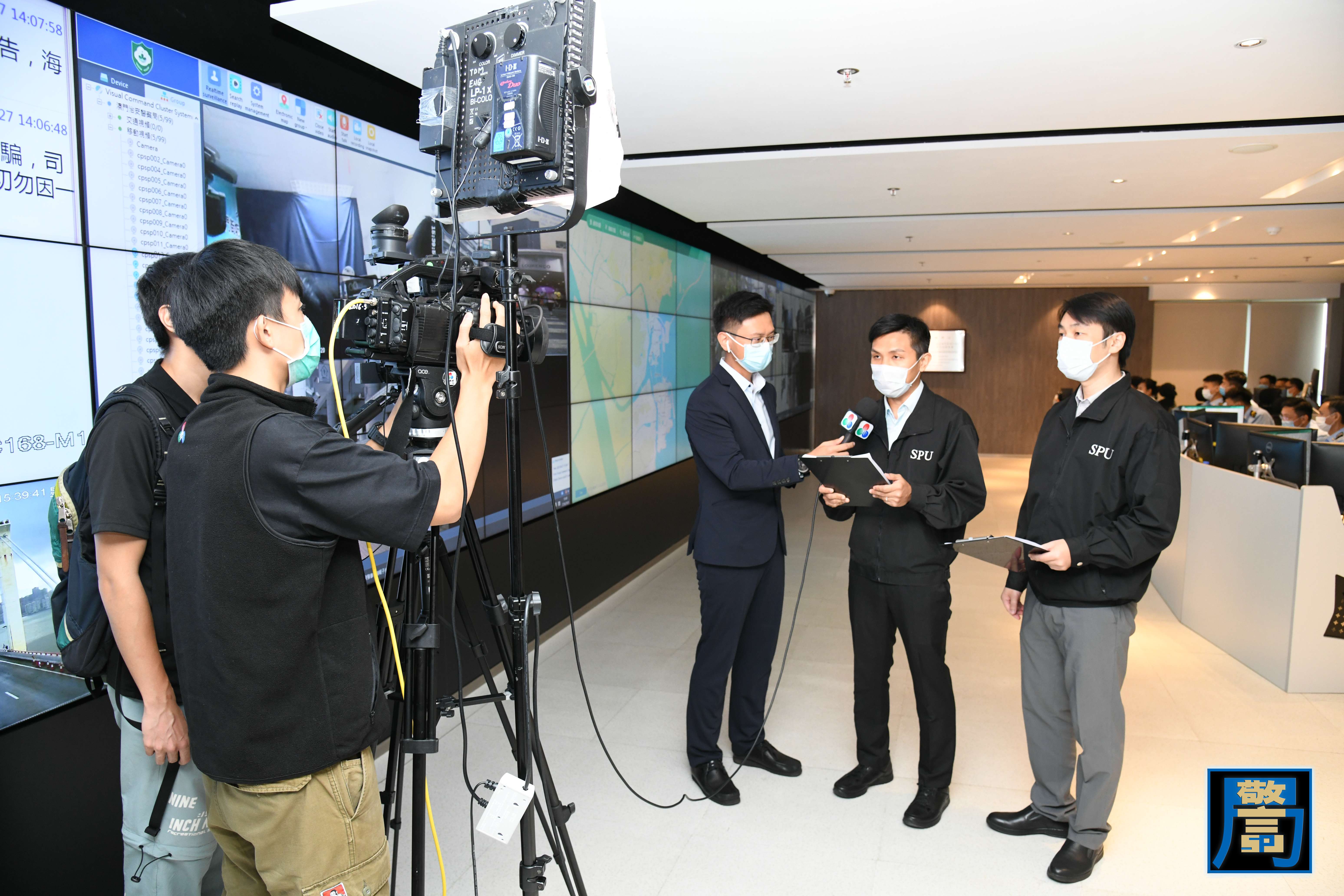 民防行動中心模擬透過電視直播向市民傳递最新資訊