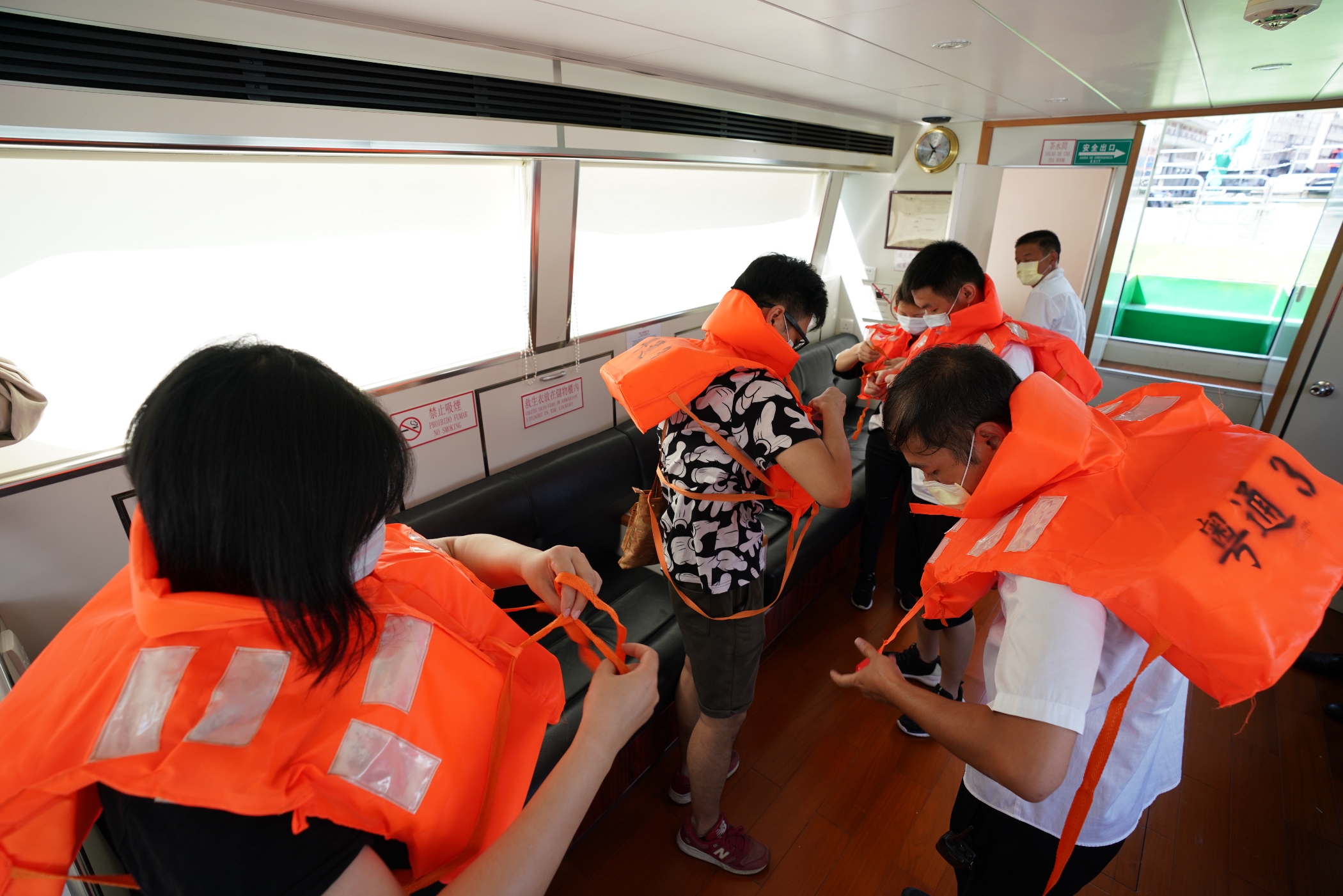 模擬乘客穿上救生衣逃生