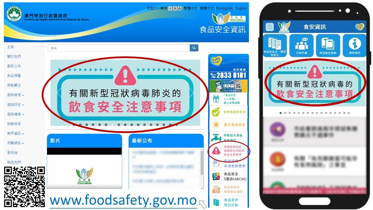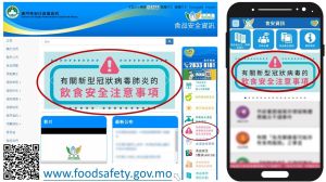 食安資訊網設有「有關新型冠狀病毒的飲食安全注意事項」專頁