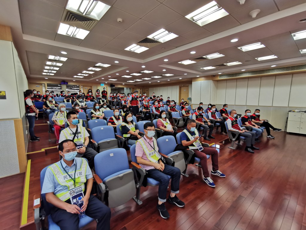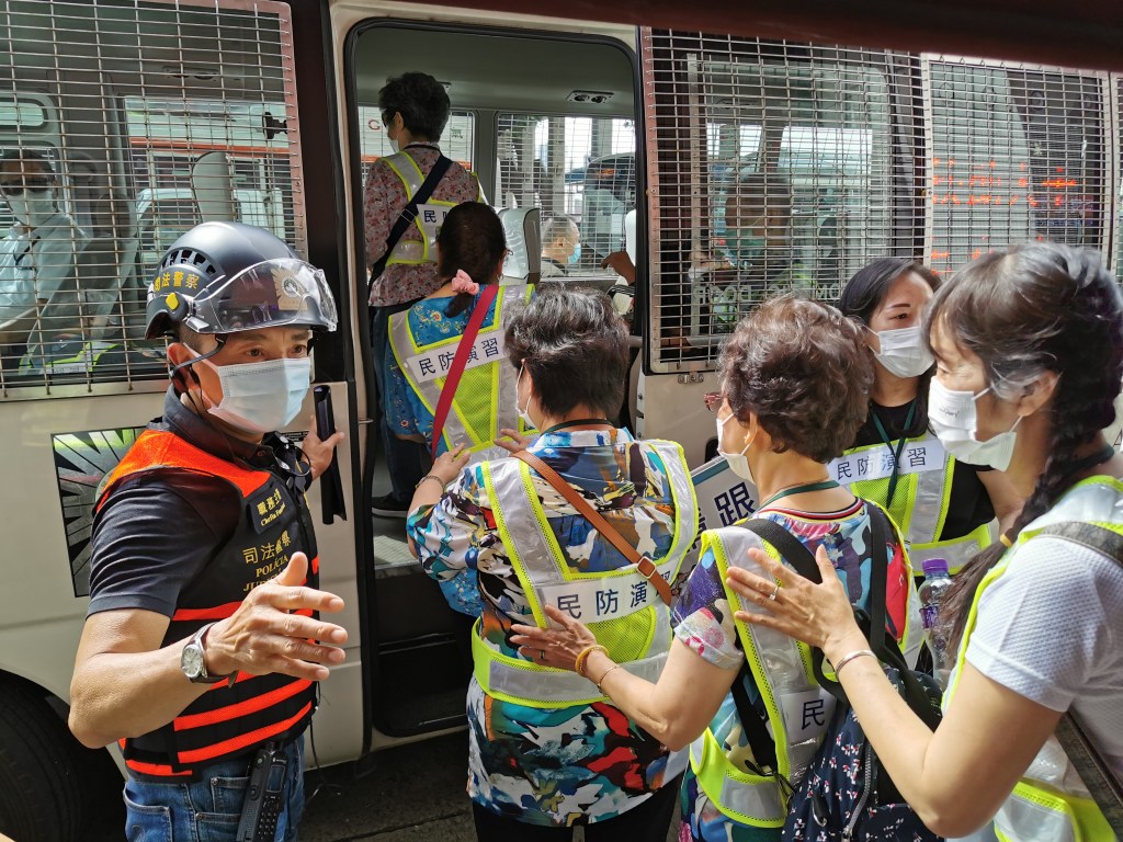 此外,司警局還聯同民間社團進行專項演練,模擬共同協助需扶助人士前往避險中心,撤離期間有居民受傷,撤離小隊人員立即通知應變指揮中心調度巡邏警車到場支援,藉此測試撤離工作人員面對突發情況的應變能力以及和指揮中心的協作能力,從而優化各項應急預案,提高撤離工作速度和效率。