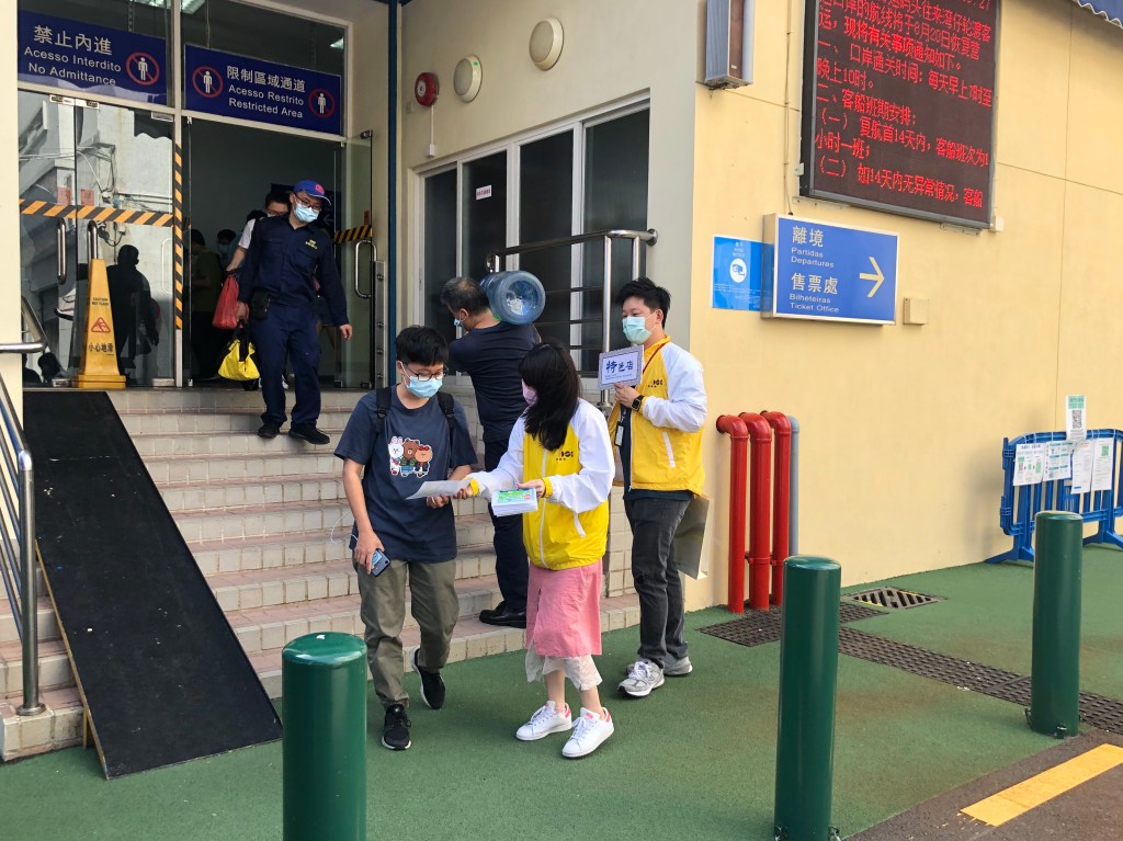 隨著內地旅客簽注逐步恢復辦理,加上內港往返灣仔的海上客運航線今日起復航,預計到訪區內的旅客將逐步增加。為迎接復航帶動的旅客人流,經濟局今日派員到內港碼頭,向乘搭渡輪航班的旅客派發宣傳品,利用內港碼頭與特色店所在街區一步之遙的地理優勢,針對性地為特色店加強宣傳、提升知名度,吸引旅客到店消費。