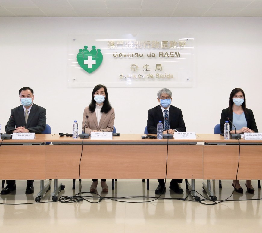 新型冠狀病毒感染應變協調中心於8月10日舉行例行記者會,社會文化司歐陽瑜司長、衛生局李展潤局長、高等教育局陳旭偉代副局長、治安警察局行動及通訊處馬超雄處長、旅遊局公共關係處劉鳳池處長、疾病預防控制中心傳染病防制暨疾病監測部梁亦好協調員共同會見傳媒。