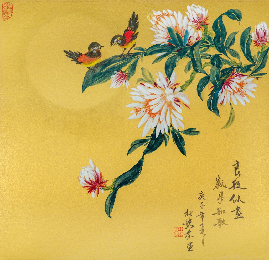 近日杜艷芬將會精選她在疫情期間用金箋紙繪畫的小品新作,舉辦名為《花樣情懷──杜艷芬金箋小品花鳥國畫展》的國畫展活動,來一場視覺盛宴實為澳門藝壇之一大快事。金箋方寸,寫四季之常青,百花之怒放,着實令人心馳。