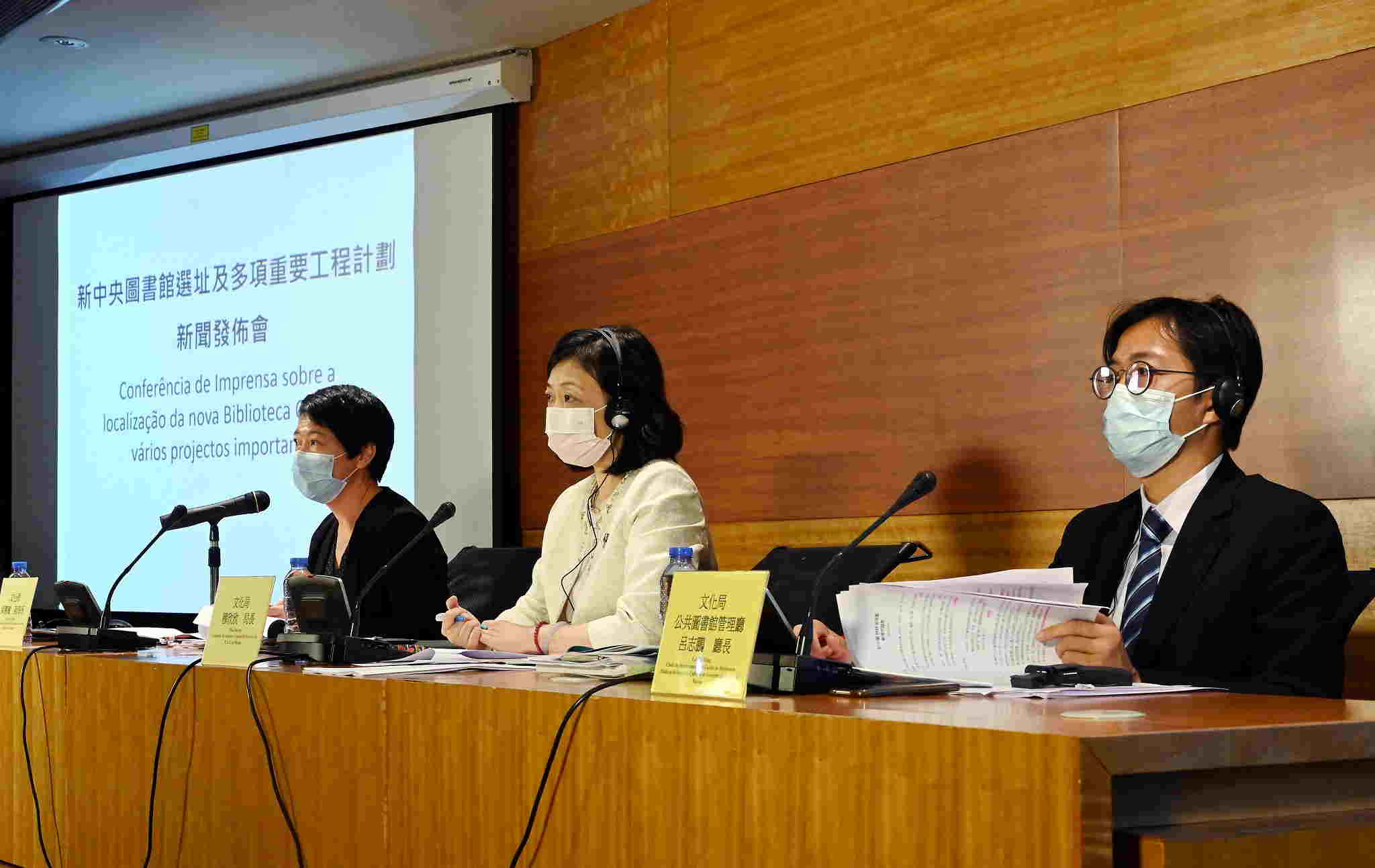 文化局9月10日就有關新中央圖書館的選址及多項重要工程計劃舉行新聞發佈會,局長穆欣欣、副局長梁惠敏及公共圖書館管理廳廳長呂志鵬出席,介紹新中央圖書館選址情況及概念設計方案,並就澳門文化中心黑盒劇場計劃的進度、氹仔益隆炮竹廠舊址及荔枝碗船廠片區局部開放的構想進行介紹。文化局將致力推進各項工作規劃,為市民提供更多文化休閒活動空間。