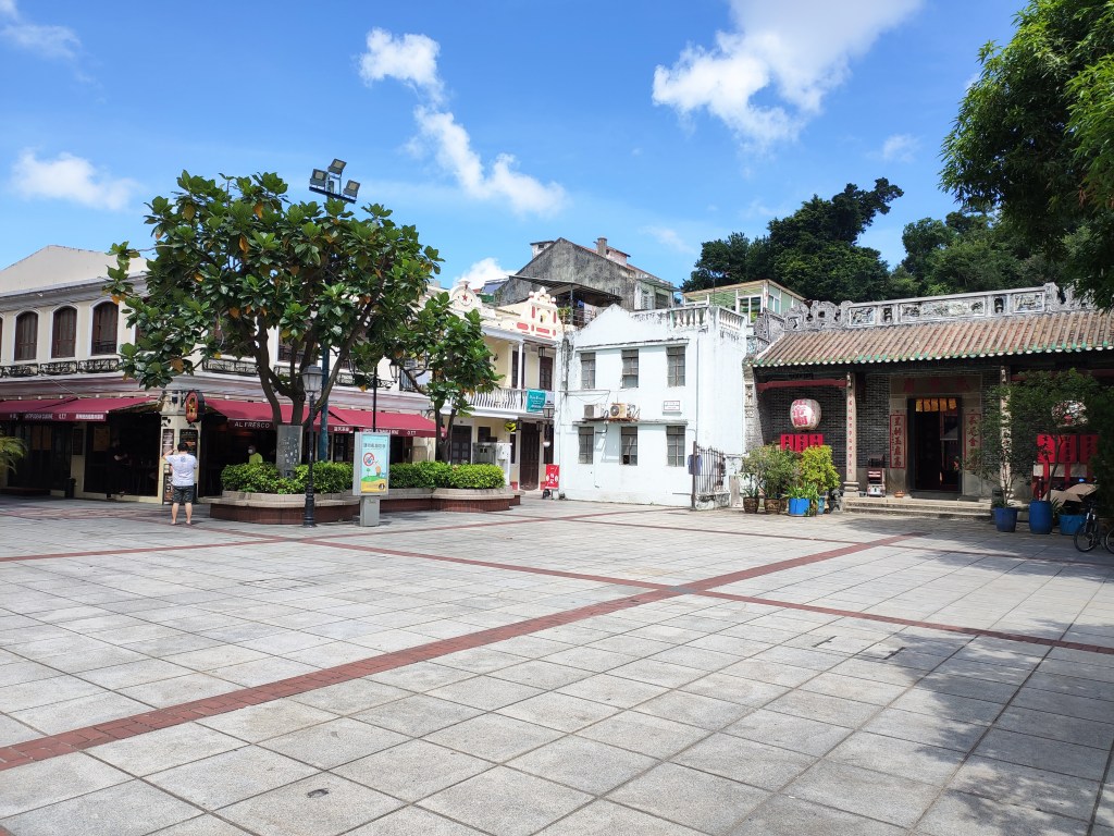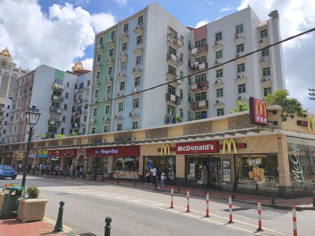 走在地堡街上,一側是氹仔舊城區的建築、廟宇、平房,另一側是新建成的大廈、商舖、連鎖餐廳和品牌,強烈的對比足證氹仔發展一日千里。