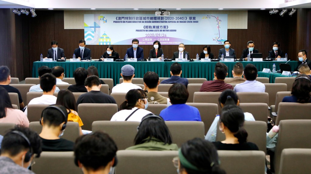 《澳門特別行政區城市總體規劃(2020-2040)》草案及《輕軌東線方案》日前於馬交石炮台馬路33號5樓多功能廳舉行第二場公眾諮詢會,約100位市民參加,主要關注南、西灣湖一帶景觀維護、增加綠化及休憩空間、文化保育、商業區用地配合本澳經濟適度多元發展,以及輕軌東線車站與社區的連接情況等。