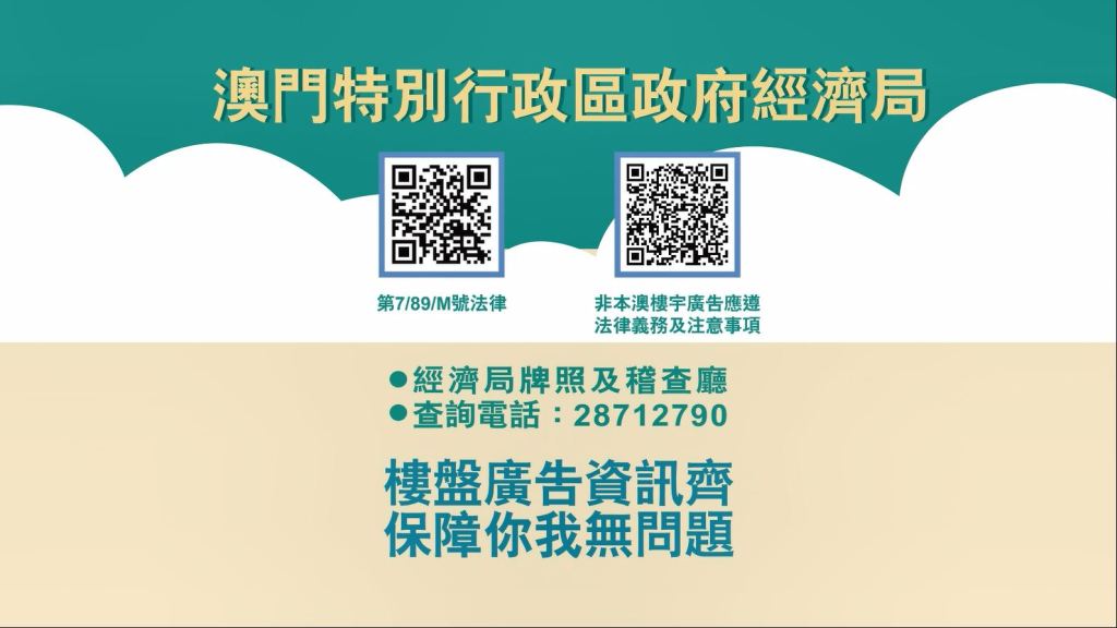 經濟局重申,在澳門宣傳非本地樓宇廣告須符合第7/89/M號法律《廣告活動》的規定,包括廣告信息應符合真實性原則,並須載有交樓期限及售樓條件、出售單位的實用面積等內容。業界應遵守盡職謹慎的義務,如發現違反「廣告法」規定的廣告,行政當局將依法作出處罰,且不排除違法者須承擔倘有的民事和刑事責任。