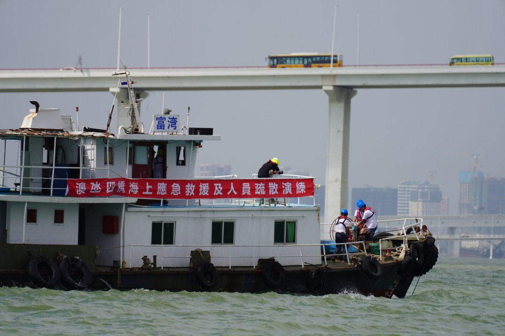 另外,在海上演練方面,主要通過模擬發生火災時馬上透過無線電通知海事及水務局24小時運作的船舶交通管理中心,並按應急預案撤離工程人員和滅火,加強海上工程人員在事故時的應急能力。海事及水務局亦聯同澳門海關派出了船隻前往現場展開救援工作。