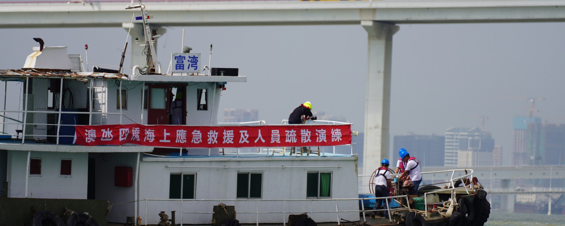 另外,在海上演練方面,主要通過模擬發生火災時馬上透過無線電通知海事及水務局24小時運作的船舶交通管理中心,並按應急預案撤離工程人員和滅火,加強海上工程人員在事故時的應急能力。海事及水務局亦聯同澳門海關派出了船隻前往現場展開救援工作。