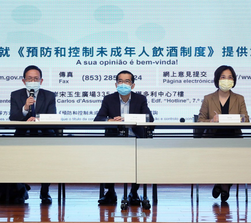 衛生局日前於黑沙環衛生中心3樓演講廳舉行《預防和控制未成年人飲酒制度》首場諮詢專場,由衛生局鄭成業副局長主持,出席代表包括:法律辦公室夏利樂協調員、疾病預防控制中心林松主任及慢性病防制暨健康促進部陳丹梅協調員、預防及控制吸煙辦公室鄧志豪主任及柯慶建顧問醫生。首場諮詢專場為業界專場,對象為零售業、餐飲業、與酒類有關的行業組織,合共22個相關團體或機構約50名代表出席參與。