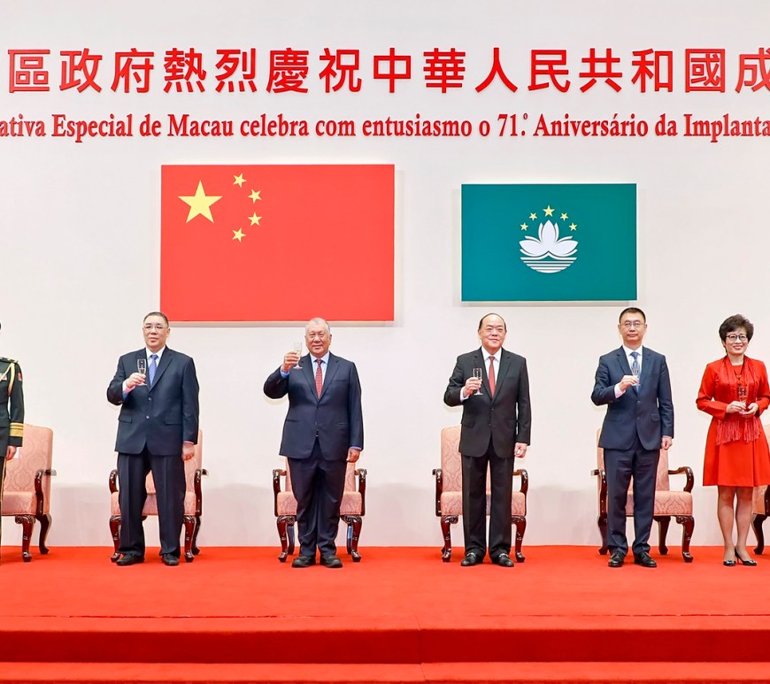特區政府於10月1日舉行慶祝中華人民共和國成立71周年酒會。行政長官賀一誠致辭時表示,澳門特區將充分發揮處於國家經濟雙循環交匯點的平台角色作用,在積極參與國內經濟大循環,進一步融入國家發展大局的同時,在做好疫情防控的前提下,參與國際經濟循環,服務國家新形勢下的對外開放和澳門經濟持續發展。