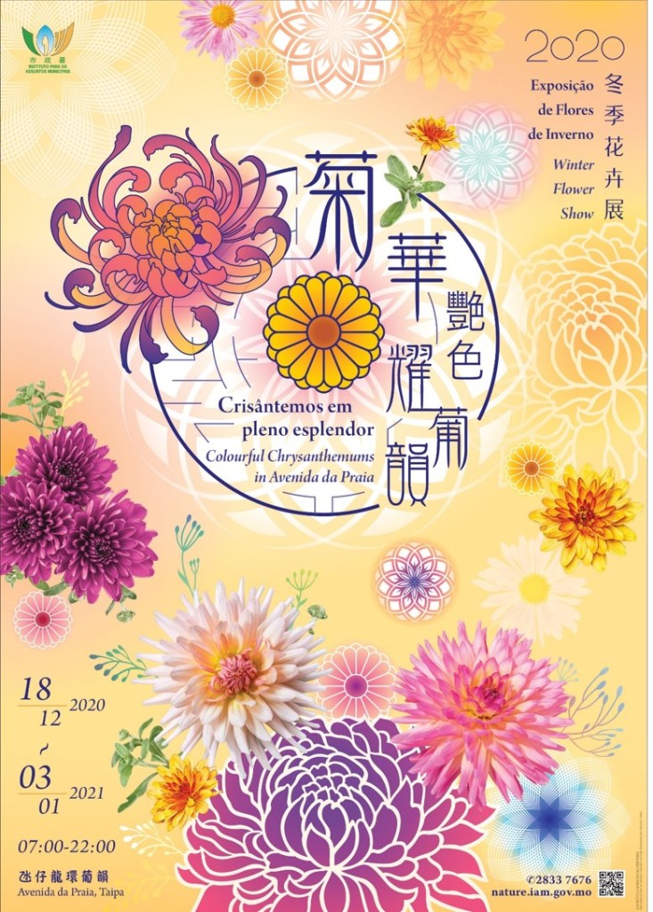 為慶祝澳門回歸祖國二十一周年及豐富市民閒餘活動,市政署將於十二月十八日至明年一月三日舉辦二零二零年「菊華艷色耀葡韻」冬季花卉展,以龍環葡韻為主展場,於全澳主要公園及綠化帶擺放菊花及節日花卉,讓市民和旅客感受濃厚節日氣氛。
