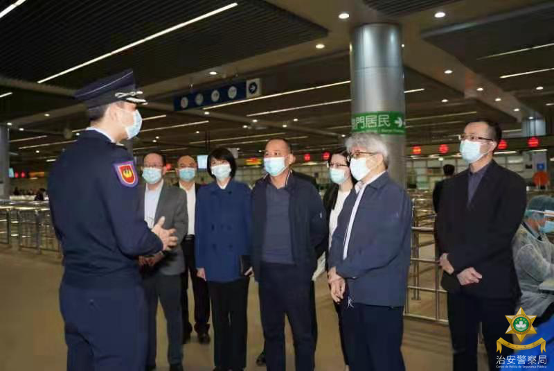 在各個出入境事務站,領導及主管一行檢視了口岸防疫設施、車道安排、健康碼檢查區、人員分流區等。詳細聽取出入境事務站主管及衛生局人員關於疫情下口岸管控工作的匯報,瞭解居民和旅客轉換健康碼及通關流程、健康碼與出入境系統的關聯和運作等。視察過程中兩位領導提出了各項優化工作的意見和建議;指出本澳疫情防控工作雖然取得階段性成果,但周邊地區疫情仍然波動,防控工作不能鬆懈,大家要做好「外防輸入、內防反彈」的工作。
