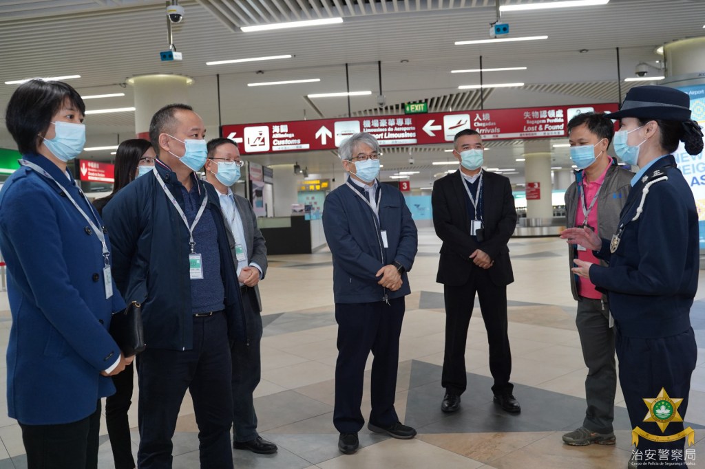 此外,兩位局長也關注口岸人員的口罩、防護衣及消毒用品等防疫物資的使用情況,強調要注意個人衛生和遵從清潔指引;站內設施要做好清潔及消毒,並監督各項流程,確保防疫指引有效執行,以減低病毒傳播風險;而口岸的執法、衛生、後勤等範疇人員要繼續保持良好的溝通及相互支援,合力做好疫情下的把關工作。