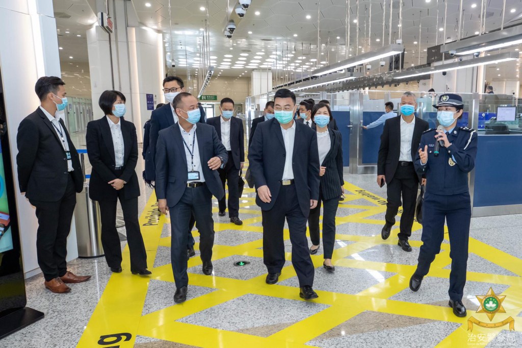此外,廣東省公安廳代表團專程參觀了橫琴口岸澳門口岸區,實地視察口岸的疫情預防監控工作、珠澳邊檢「合作查驗、一次放行」新通關模式的應用及海關監察儀器的操作等;同時聽取在該口岸可為旅客辦理入境內地簽證的新舉措、輪候通道智慧化管理及該口岸未來發展規劃等介紹。代表團對該口岸的安全管理及通關設備給予高度評價,並期待和澳門同仁繼續加快探討下階段的通關便利合作。