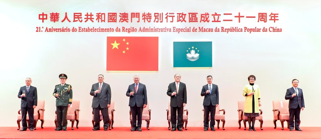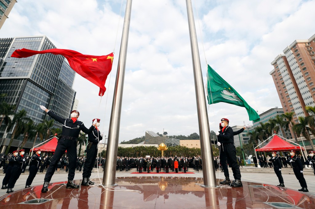 特區政府上午8時在金蓮花廣場舉行隆重的升旗儀式,出席的政府官員及嘉賓約510人。此外,多個政府部門及民間團體今日分別舉行活動,熱烈慶祝澳門特區成立21周年。