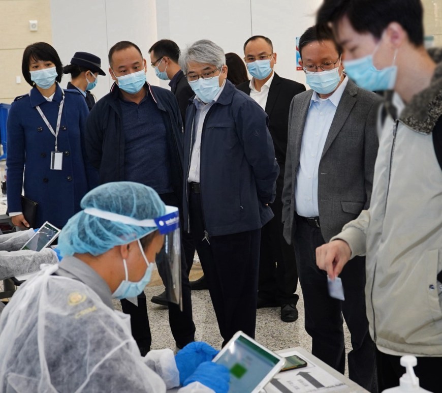 為進一步做好口岸通關及防疫措施,12月6日上午,衛生局李展潤局長、治安警察局吳錦華局長、相關官員及出入境事務主管,前往關閘、港珠澳大橋、澳門國際機場及橫琴口岸澳門口岸區,實地視察本澳各項出入境及防疫措施的落實情況,指示完善及優化有關工作,並感謝各位前線同事及鼓勵他們繼續堅守崗位,對疫情保持警惕,做好常態防控。
