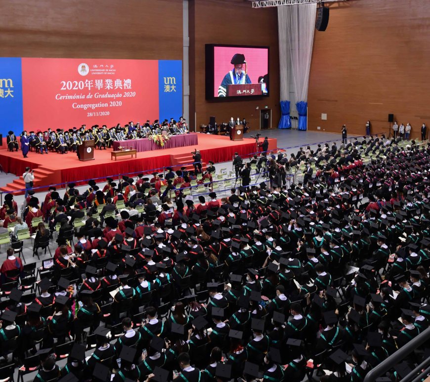 澳門大學日前舉行2020年畢業典禮,並因應防疫設有網上同步直播。行政長官兼澳大校監代表、社會文化司司長歐陽瑜表示,澳大採取一系列應對疫情措施,保證了各項教學和研究工作的開展,並感謝澳大從多方面主動為特區抗疫工作作出積極貢獻。